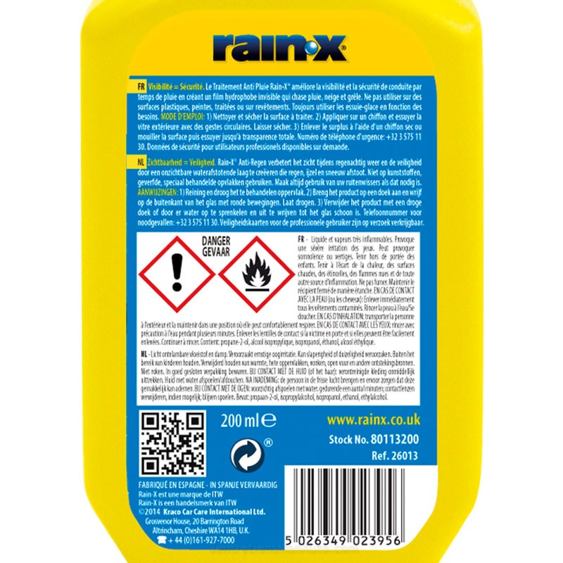 •Eviter les surfaces plastiques (Préférer RAIN-X DEPERLANT PLASTIQUES) et le plexiglas.