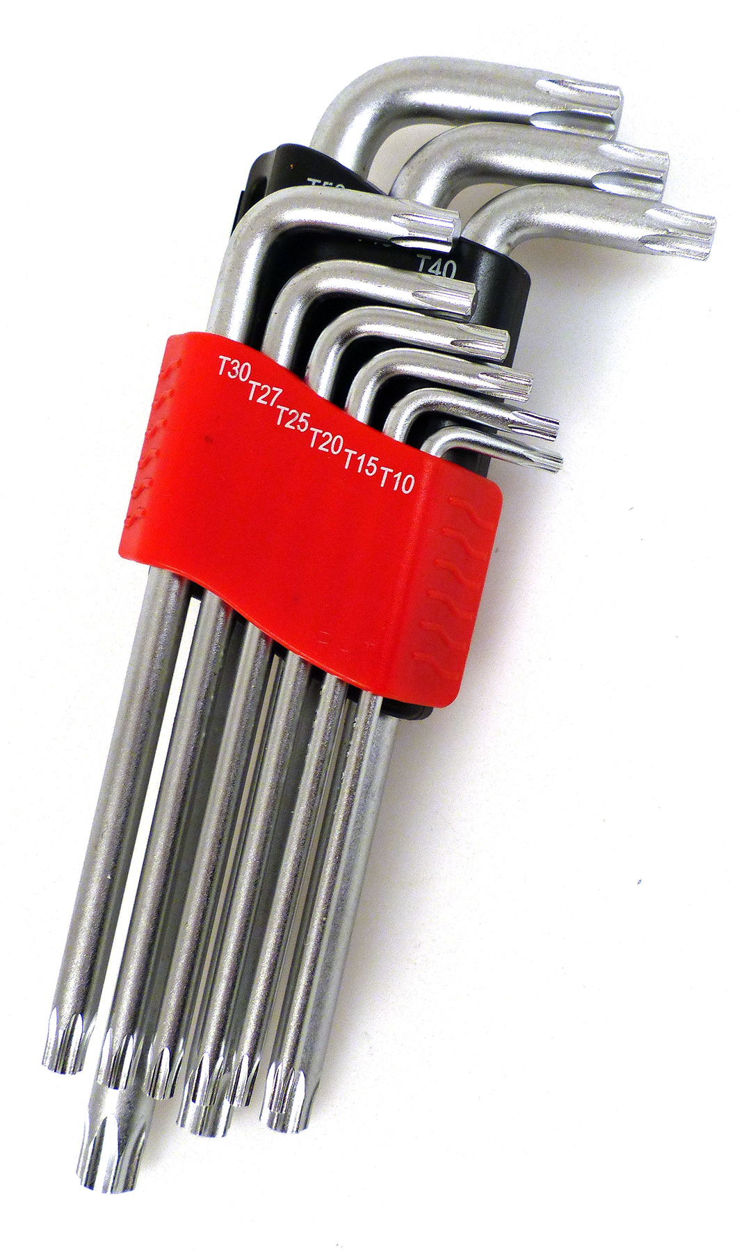 Jeu de 9 clés étoiles coudées : T10 / T15 / T20 / T25 / T27 / T30 / T40 / T45 / T50 - En Chrome Vanadium type professionnel.