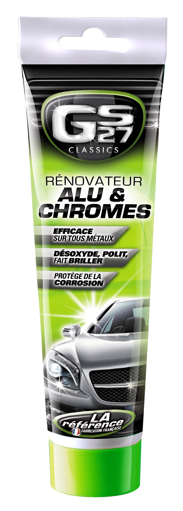 Le Rénovateur Alu & Chromes GS27® permet grâce à sa formule abrasive de désoxyder, polir rapidement et de manière efficace tous les métaux. Il dépose un film protecteur tout en redonnant de la brillance aux surfaces ternies pour un résultat durable. Ce Rénovateur Alu & Chromes GS27® peut être utilisé sur tous les chromes, l’inox, l’aluminium, le cuivre, le bronze, l’étain, l’argent.